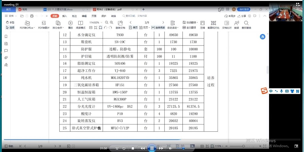 会议采用线上线下相结合的形式进行,对生物产品检测实训室设备采购项目进行论证。论证会上,生物技术系系主任薛新花详细汇报了“生物产品检测实训室建设”方案,并对设备购置、设备参数、设备价格等逐条说明。接着,与会专家对采购设备的合理性、规格、性能、用途、数量、价格以及采购的程序和安装注意事项等方面提出建设性的意见和建议。