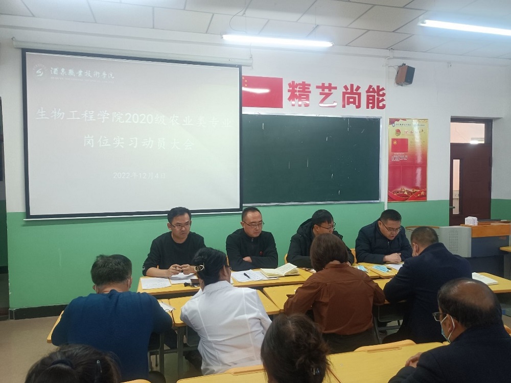 2022年12月4日17:30,生物工程学院在逸夫楼A-517召开2020级农业技术类专业岗位实习动员会。2020级现代农业技术、种子生产与经营、园艺技术、园林工程技术专业全体学生及现代农业技术系全体教师参加动员会,会议由生物工程学院党支部副书记张涛主持。