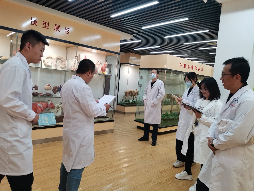 为进一步实现高质量人才培养,精准定位专业教学方向,提高深化实验实训教学创新,加强畜牧兽医类专业师资队伍建设,保障教学、科研和社会服务。2023年3月29日下午,生物工程学院畜牧兽医系主任张建明老师带领教学系全体教师在逸夫楼A座现代畜牧标本馆举行专业教师讲学院、讲专业、讲实训教研活动。
