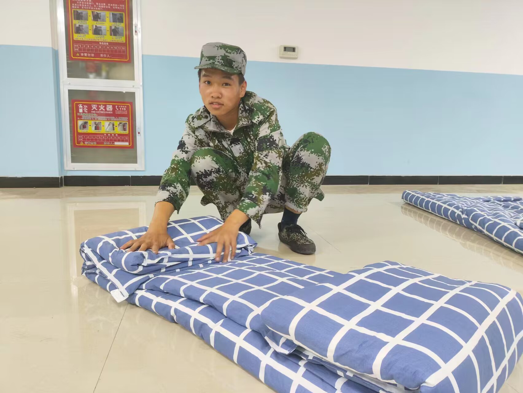 9月12日晚,10名胡杨国旗护卫队队员走进寝室,为新生展示了什么是军人内务标准。他们全程亲自示范,边操作边讲解。对折尺寸、折迭手法、掏平压实、迭出棱角……从如何将被子折成完美的“豆腐块”,到各种生活用品的摆放和收纳。在胡杨国旗护卫队队员的耐心指导下,大家欢声笑语,一起动手,将宿舍变得干净整齐,井然有序。新生还一同学习了环境卫生、宿舍保洁的标准,寝室内务整理工作取得显著效果。