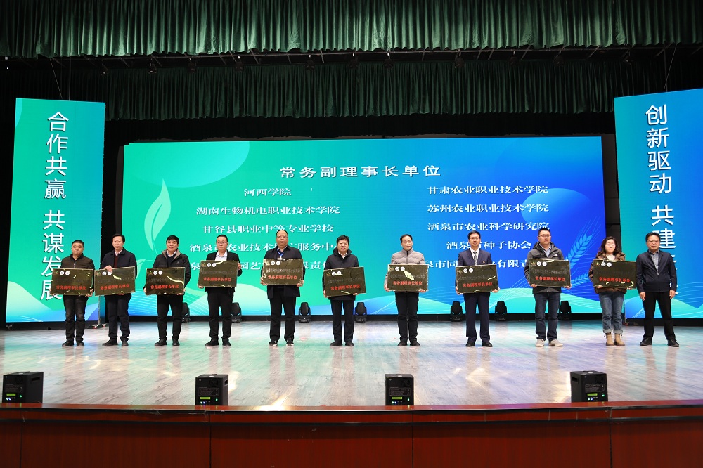 甘肃敦煌种业集团股份有限公司党委书记、董事长刘兴斌,甘肃农业大学党委常委、副校长李广,甘肃省种子总站党委书记、站长吕小瑞,酒泉市人民政府副市长陈国喜,酒泉职业技术学院党委书记、校长易志军等领导出席会议,会议由酒泉职业技术学院党委副书记许军主持。
