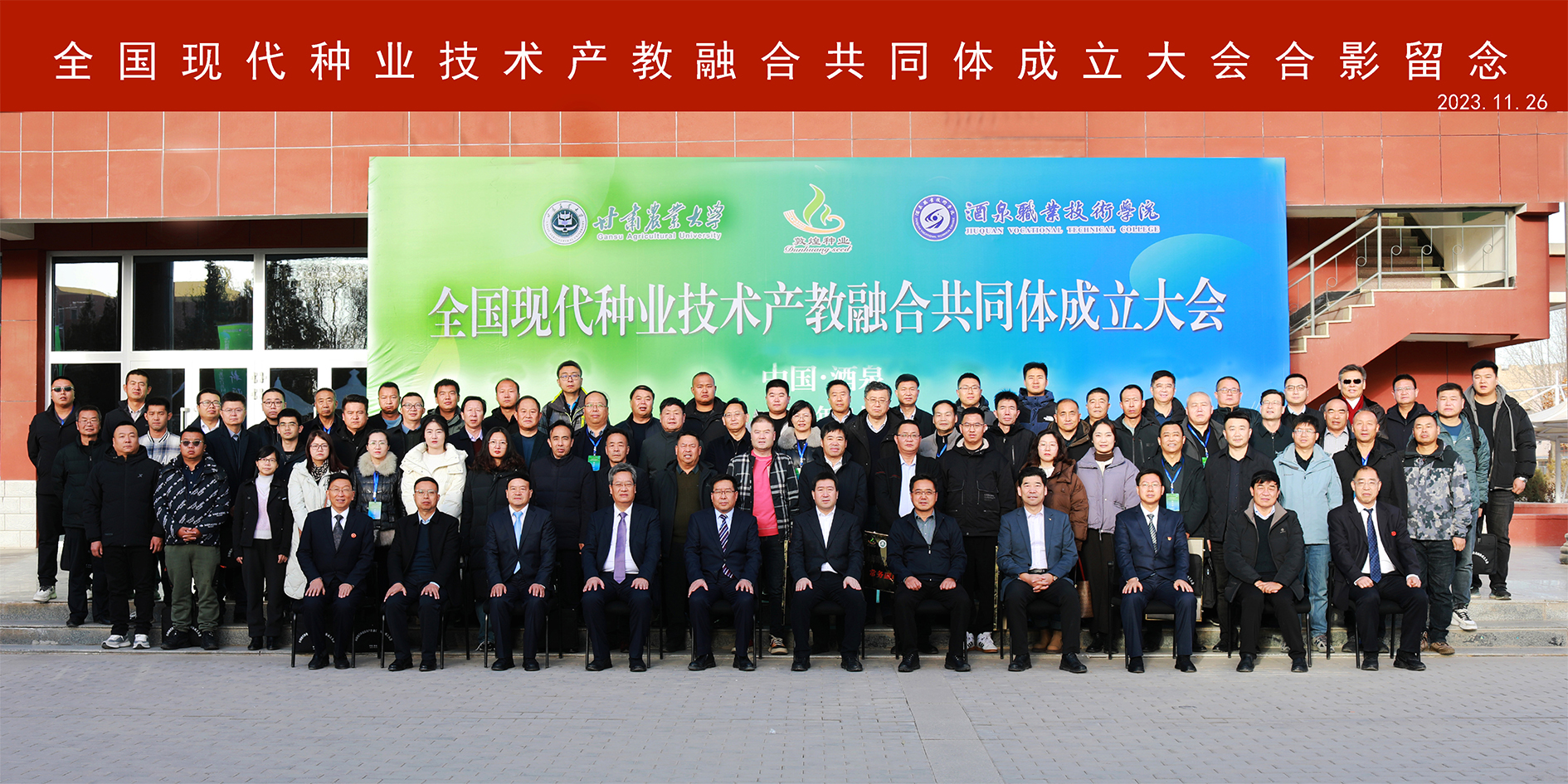 11月26日,全国现代种业技术产教融合共同体成立大会在酒泉职业技术学院胜利召开,由甘肃省敦煌种业集团股份有限公司、甘肃农业大学和酒泉职业技术学院三家单位牵头,联合种业行业龙头企业、高等院校、科研机构、行业协会和上下游企业等98家单位参加。