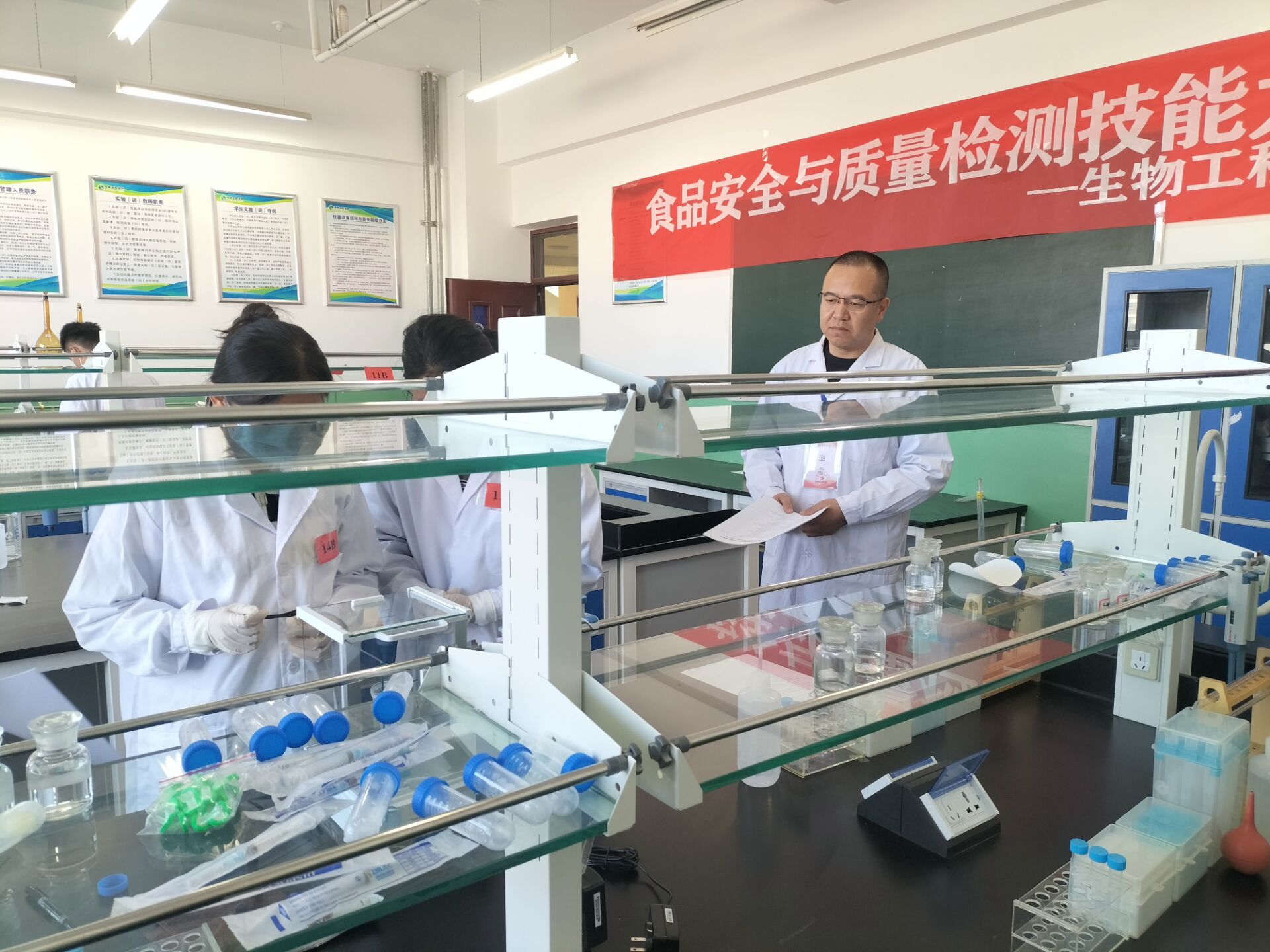 为进一步推进职业院校“三教改革”,提高人才培养质量,促进学生食品安全与质量检测职业能力和综合素质提升,2023年11月30日-12月1日,生物工程学院举办了酒泉市职业院校“食品安全与质量检测”技能大赛学生技能比赛,共有15支代表队30名选手参赛。