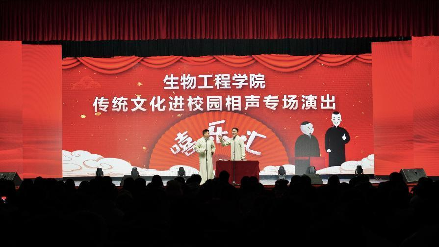 为弘扬中华优秀传统文化,提升大学生审美素养,丰富校园文化生活,让大家零距离感受相声的魅力。生物工程学院于12月21日晚,在胡杨文化活动中心举办传统文化进校园相声专场演出,师生500余人共同观看了演出。