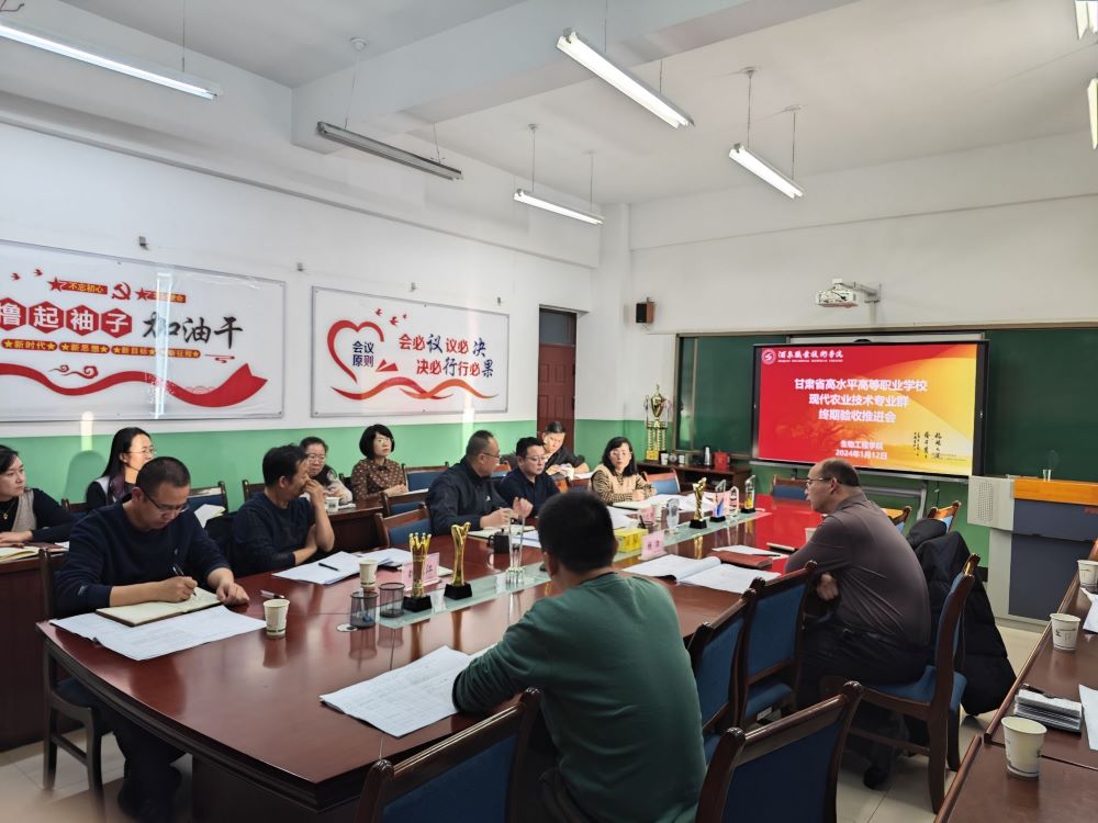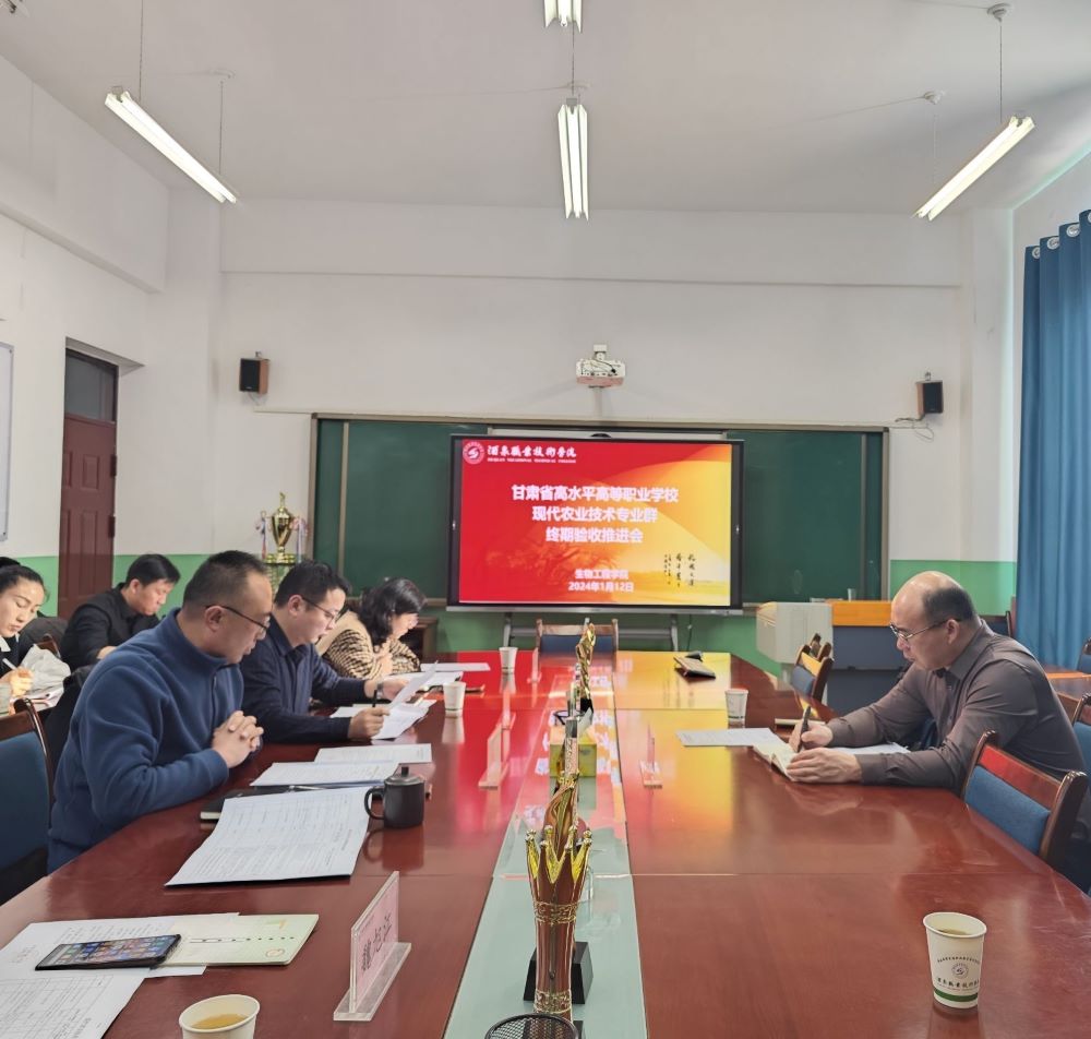 2024年1月12日下午,甘肃省高水平高等职业学校现代农业技术专业群终期验收推进会在逸夫楼A-315会议室召开。会议由生物工程学院牵头组织,酒泉职业技术学院教师工作部部长、教务处处长、双高办主任杨洁出席会议并指导工作。各参建单位领导、参建专业负责人和项目建设干事参加会议。生物工程学院党支部书记、院长柳立新主持会议。