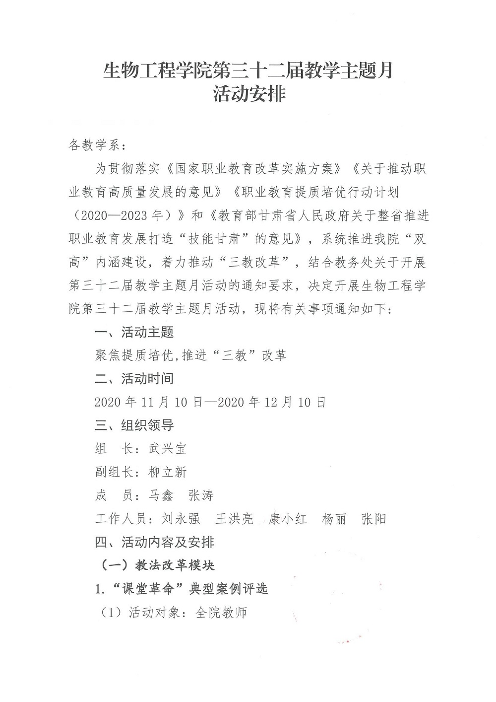 生物工程学院第三十二届教学主题月安排