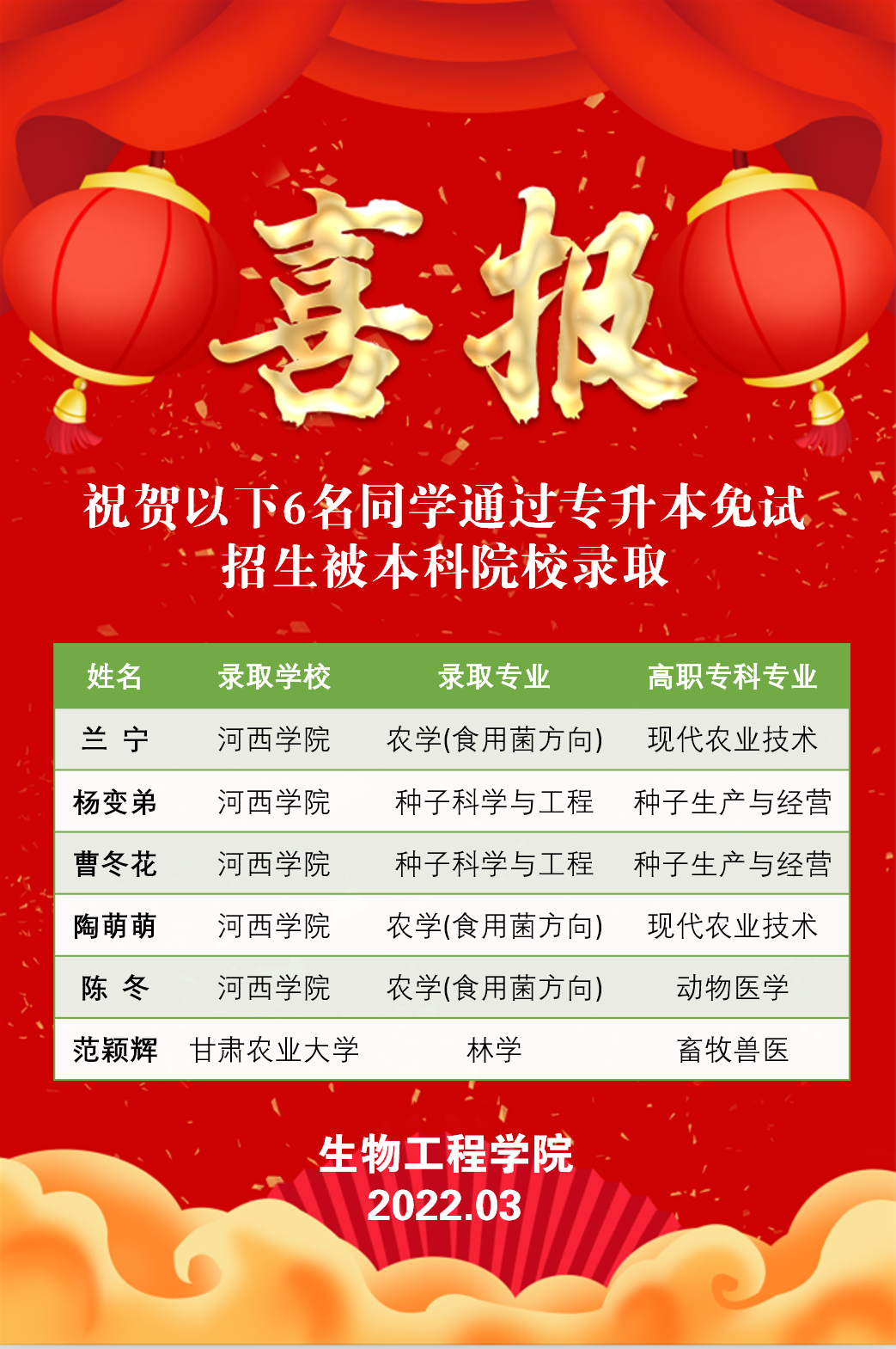 喜报—祝贺兰宁等6名同学被本科院校录取