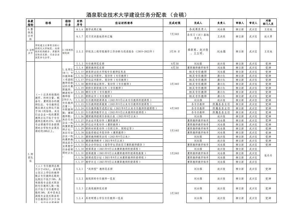 酒泉职业技术大学专业建设任务分配表(本...