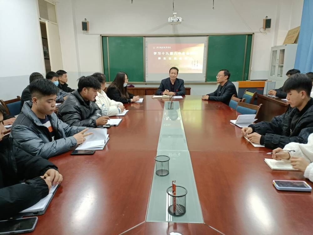 同学们积极发言,针对脱贫攻坚过程中自己家庭家乡的变化;作为新时代大学生如何在新形势、新气象、新任务中顺应时代发展;如何坚定初心所想,践行现实担当;现阶段学习生活中的困惑等和老师进行了讨论与交流。