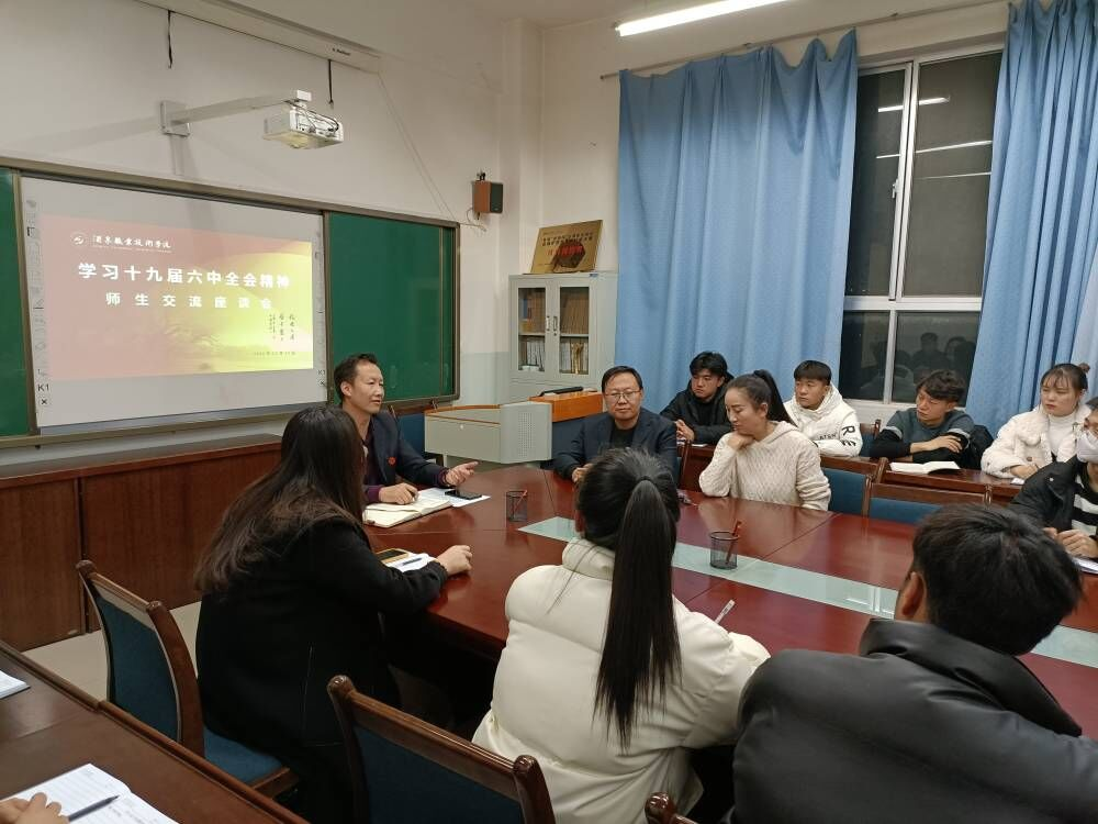 为深入贯彻学习党的十九届六中全会精神,12月14日晚,生物工程学在逸夫楼315会议室开展了“学习十九届六中全会精神师生交流座谈会”。生物工程学院党支部书记、院长武兴宝、副院长张涛、院团委书记刘怡伶、部分教师代表及30名学生代表参加了此次座谈会。在座谈会中武院长讲到要全面贯彻习近平新时代中国特色社会主义思想,深入学习党的十九届六中全会精神,强化教育强国、人才强国、科技强国的历史担当和抱负,守正创新落实立德树人的根本任务。