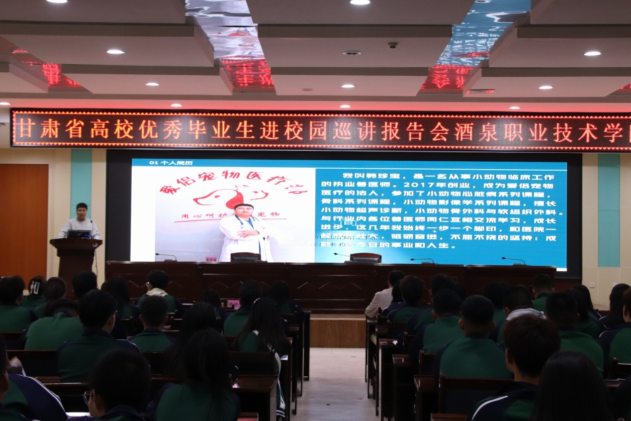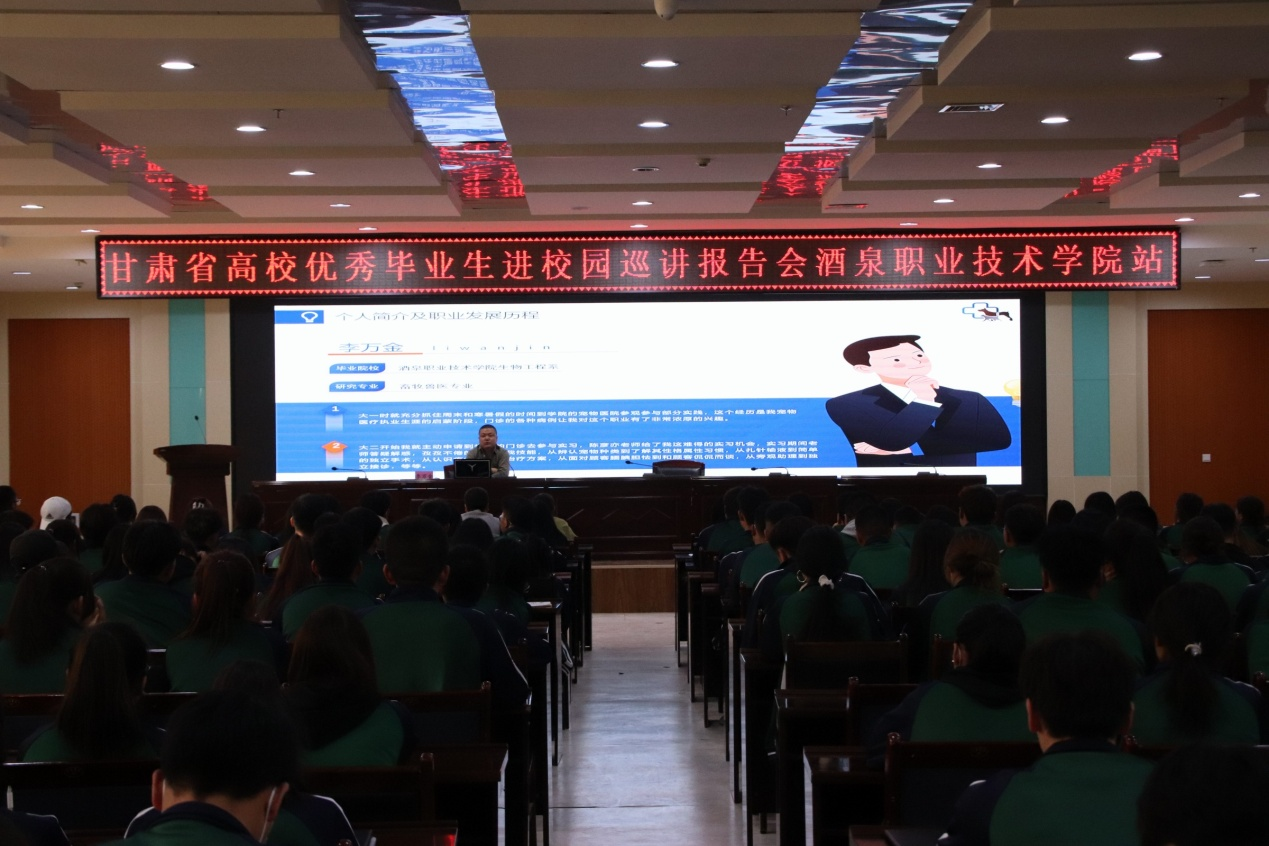 为深入学习贯彻党的二十大精神,落实党中央、国务院稳就业保就业决策部署,引导高校毕业生树立正确的就业价值观,尽早明确职业意向。5月9日,酒泉职业技术学院邀请两名优秀毕业生在学校图书馆四楼会议室举办甘肃省高校优秀毕业生进校园巡讲活动, 300多名毕业生代表参加了宣讲会。
