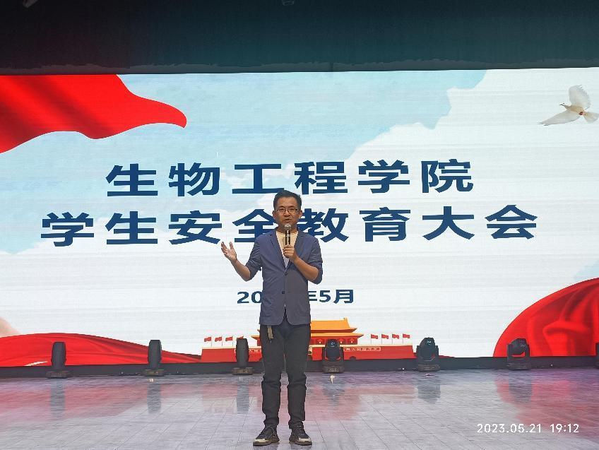 为进一步落实“平安校园”建设,提高学生安全意识,培育学生良好的日常行为规范,营造安全、和谐的学习成长环境,2023年5月21日, 生物工程学院在胡杨文化活动中心召开学生安全教育大会。