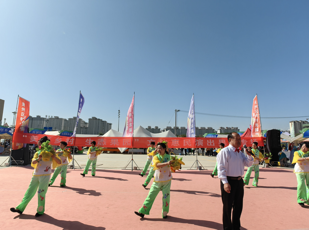 当日上午,展销会场地热闹非凡。酒泉职业技术大学社区教育中心老年合唱团精心编排了舞蹈、歌曲、情景剧等文艺节目,内容既融合了地方特色文化,又贴近乡村生活场景,引发现场观众的热烈共鸣。演出中,团队特别设计了互动环节,邀请当地农户分享种植故事、介绍产品特点,进一步拉近了文艺活动与助农主题的距离。