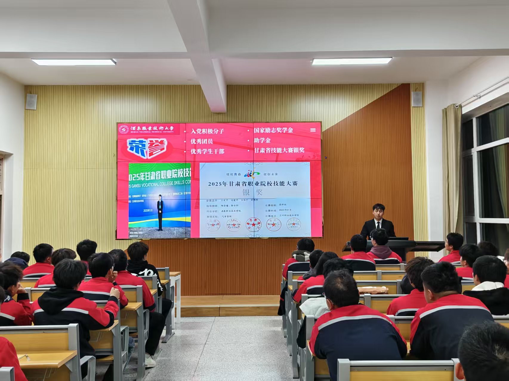 技能大赛是锤炼专业本领、提升实践能力的重要平台。在技能分享环节,获得2025年中国国际大学生创新创业大赛甘肃省分赛金奖的罗浩飞和获得甘肃省职业院校技能大赛汽车营销赛银奖的赵爱平,从团队组建、选题立意,到技术攻关、作品打磨,再到现场展示与答辩,用真实的案例向同学们展示了将理论知识转化为实践成果的完整路径。他们鼓励同学们勇敢走出舒适区,从校级赛事入手,积累参赛经验,在实践中提升动手能力与问题解决能力,极大地激发了同学们参与竞赛的兴趣与热情。