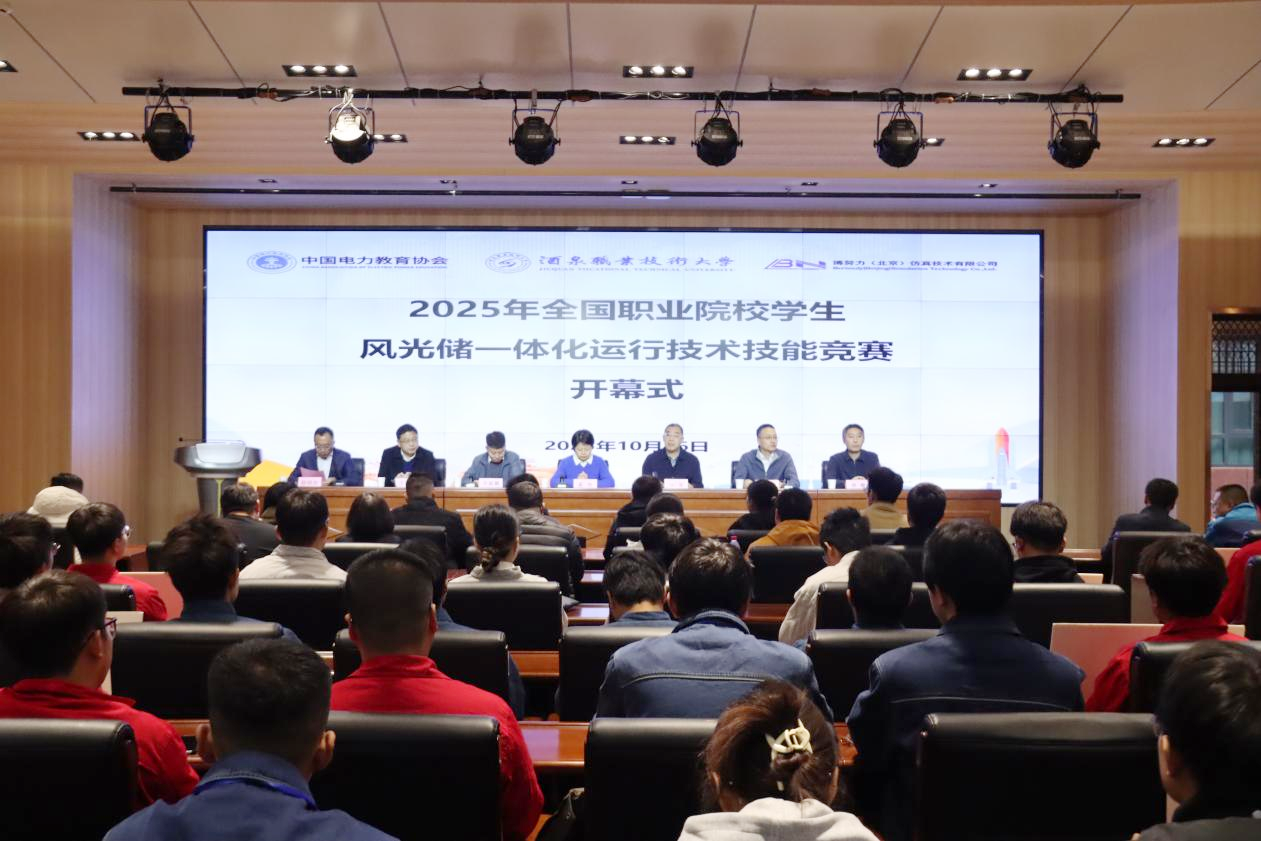 要闻快递 > 正文2025年10月16日至17日,由电力行业职业教育教学指导委员会指导,中国电力教育协会主办,酒泉职业技术大学承办的2025年全国职业院校学生风光储一体化运行技术技能竞赛在酒泉职业技术大学举办。来自全国各地的20支参赛队伍60余名师生参加了本次竞赛。