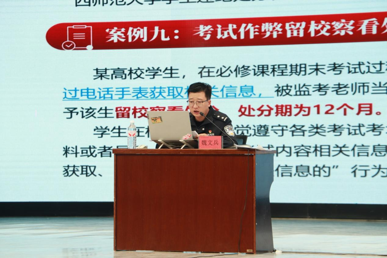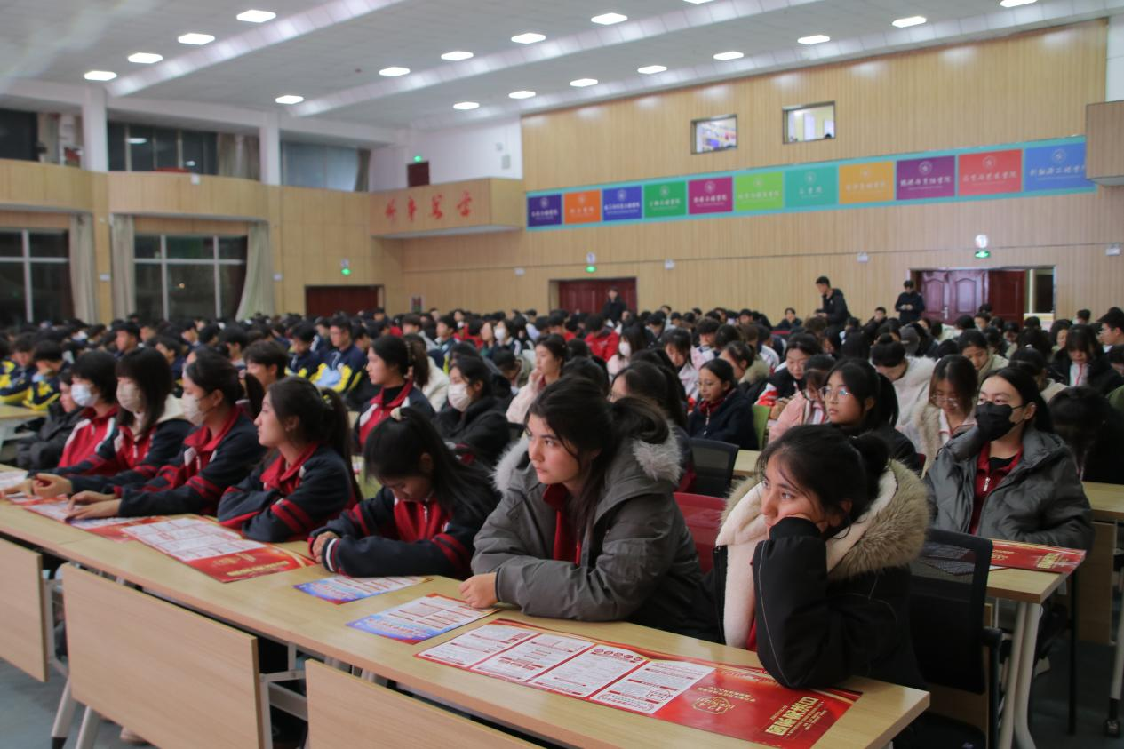 为深入学习宣传习近平法治思想,推动宪法精神进校园、入人心,落实立德树人根本任务。学校于2025年12月2日组织开展“法治护航青春 知法守护未来”专题法治课活动。活动采用“主会场线下集中授课 + 分会场线上同步直播”模式,覆盖全校学生,活动特别邀请甘肃省酒泉监狱魏文兵警官担任主讲嘉宾。